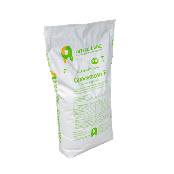 выпускается в виде порошка или кристаллов белого цвета. Кормовая добавка САЛЬМОЦИЛ F регулирует рН в ЖКТ птиц и свиней, стимулирует выработку ферментов Органические кислоты, входящие в состав САЛЬМОЦИЛ F, останавливает рост патогенных бактерий Salmonella, E-coli, Campylobacter, Clostridium, Pseudomonas и плесневых грибков, предотвращает окисление жиров и подавляет гнилостные процессы в кормовом сырье.